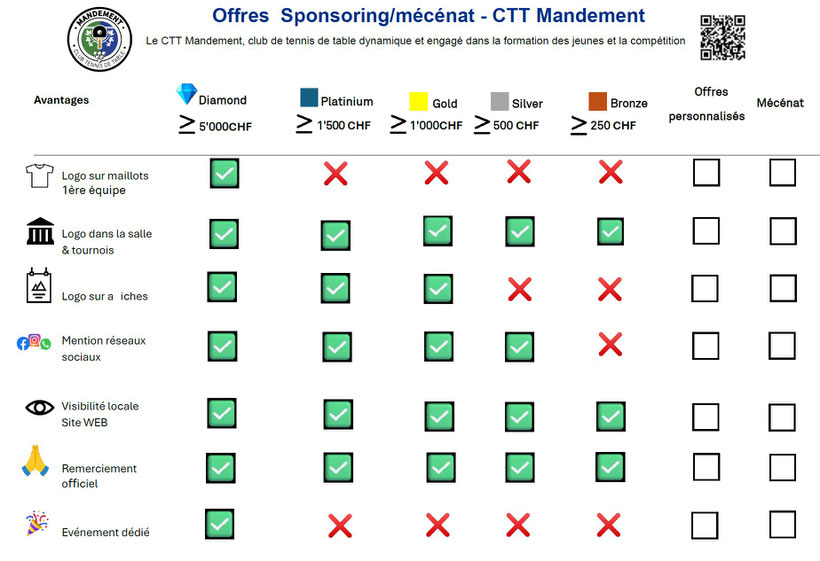 Merci à nos généreux sponsors et donateurs qui soutiennent notre école de tennis de table.